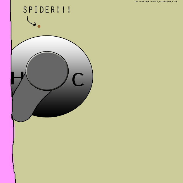 I turned off the water, dried myself off and stepped out. I grabbed a piece of toilet paper and turned around to seal the spider's fate.... But it was gone.